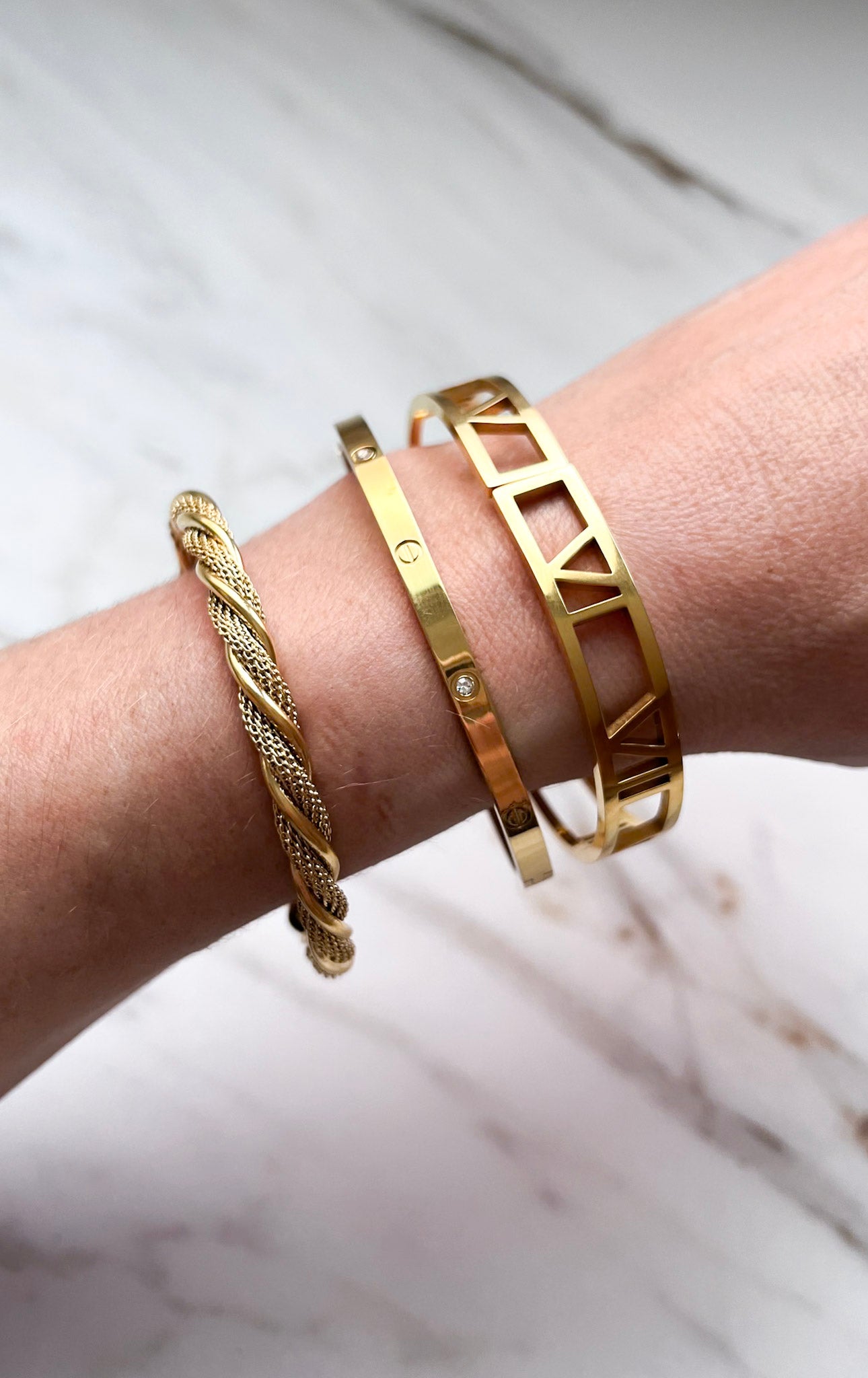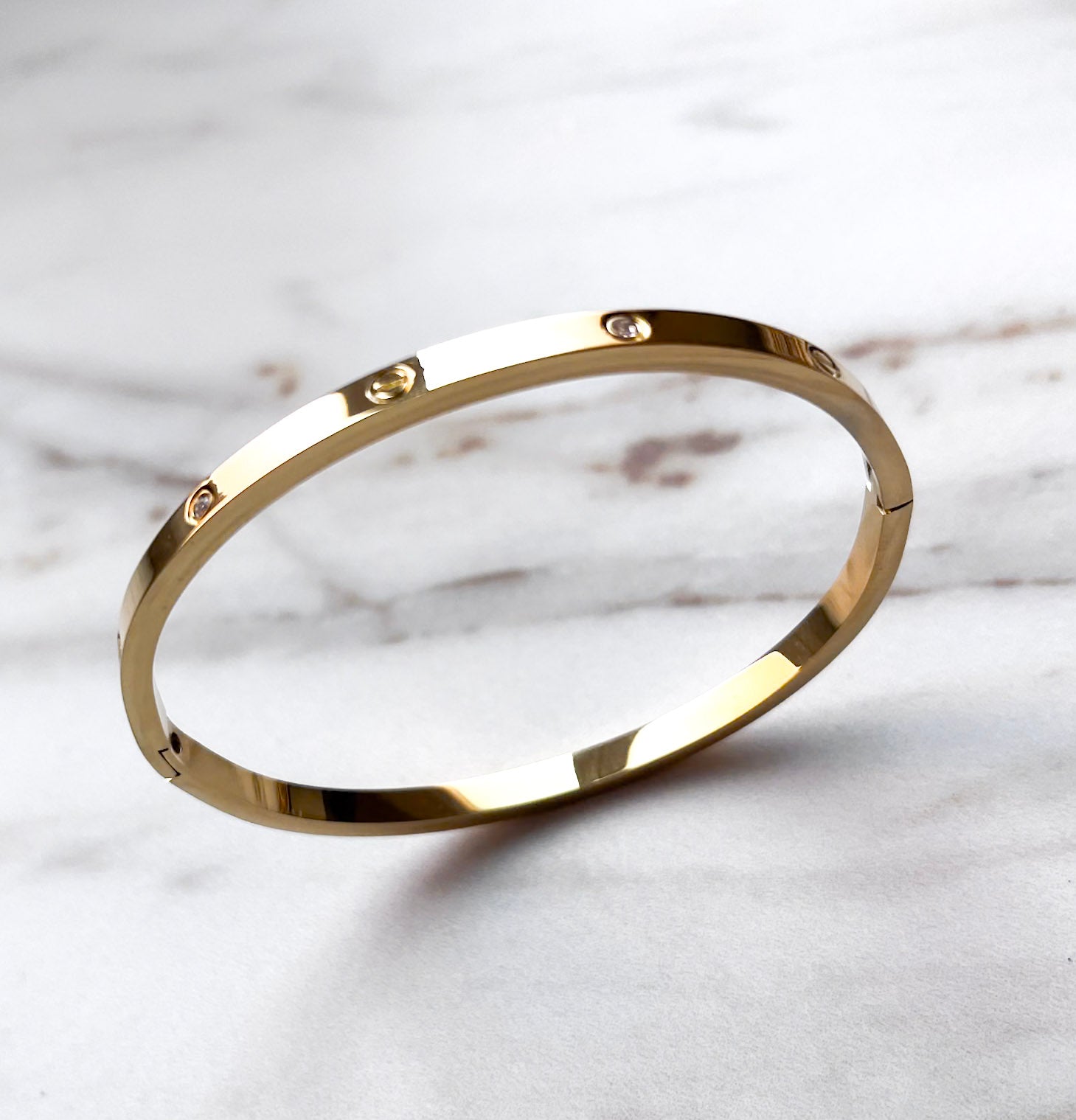 Pulsera rígida con cierre clic, acero acabado en oro.