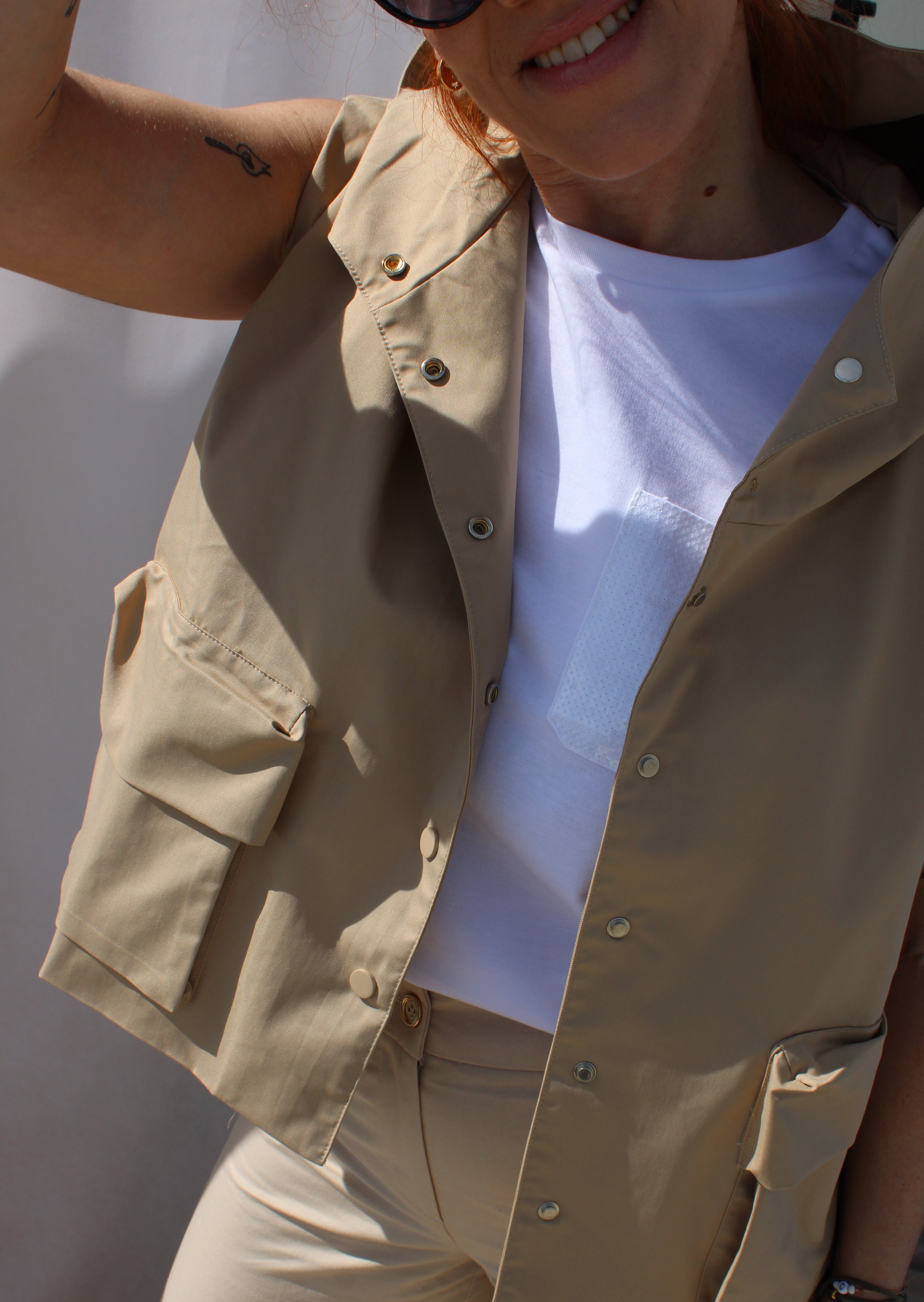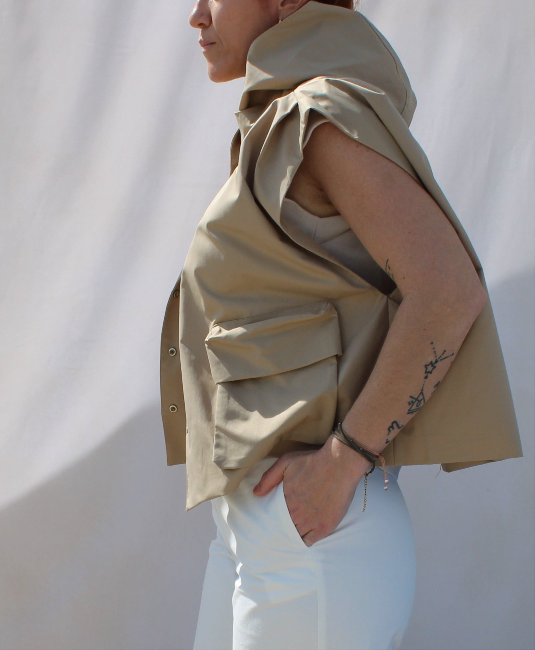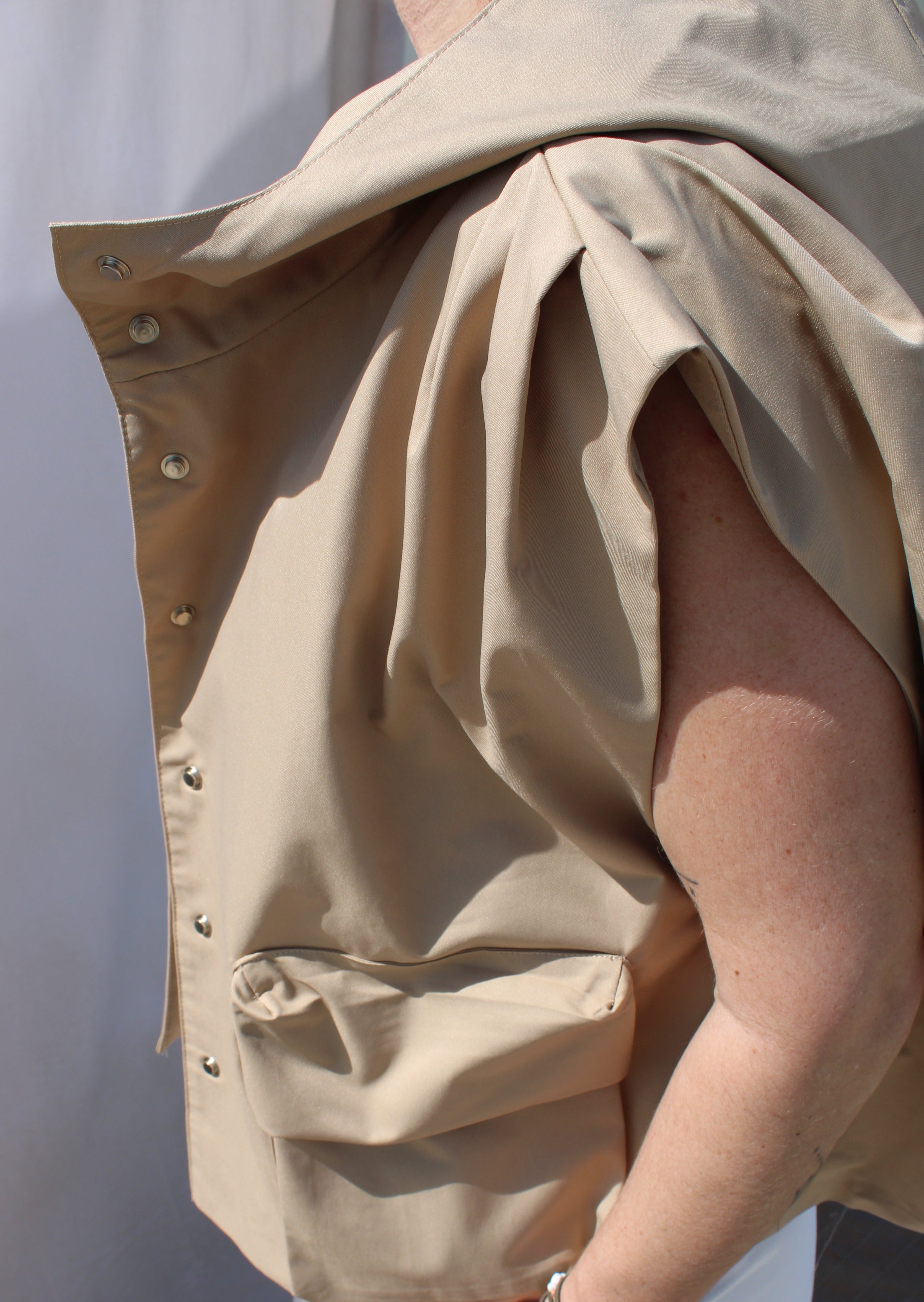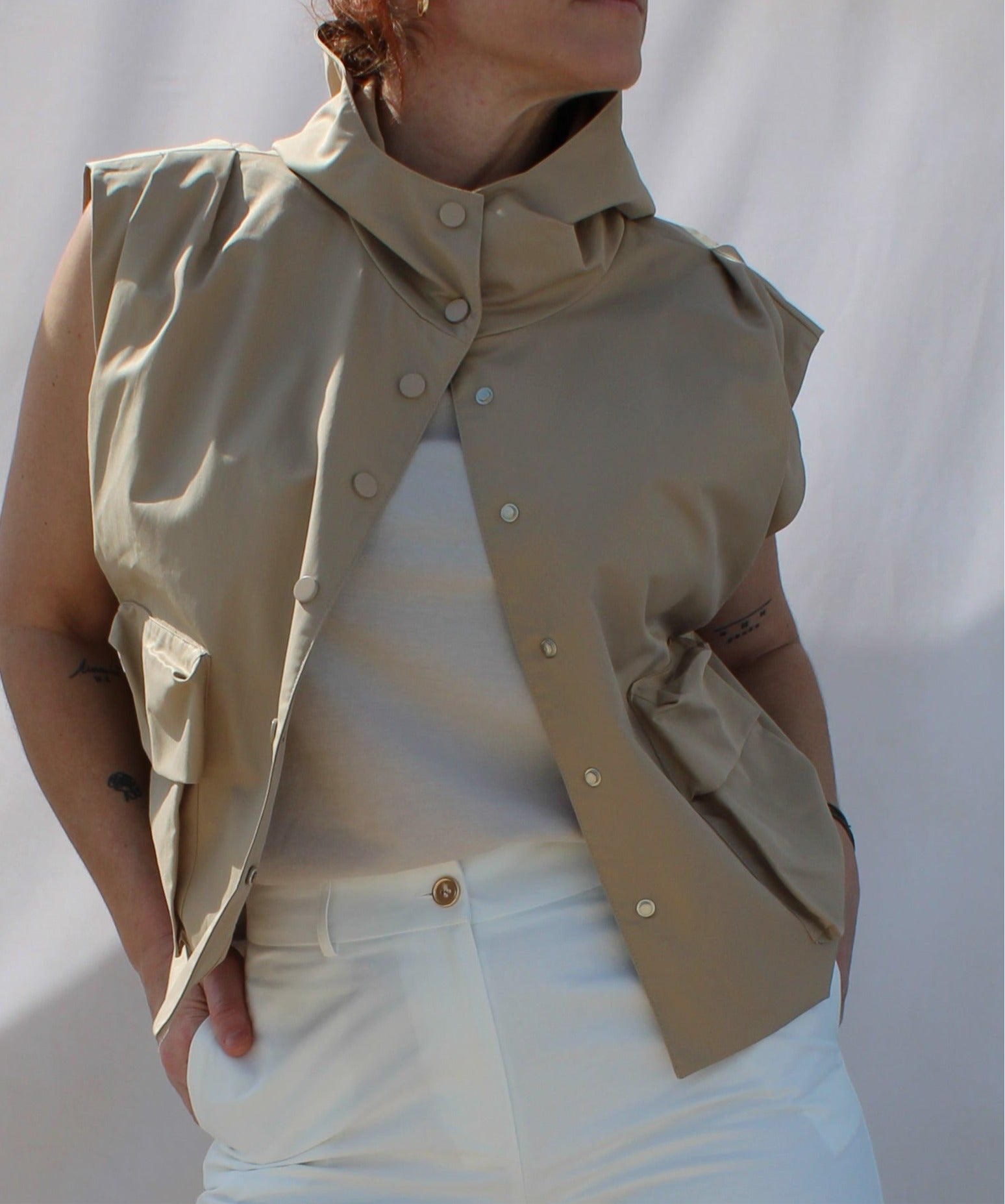Chaleco oversize (de 36 a 44) color beige con capucha y bolsillos. Rollazo máximo!
