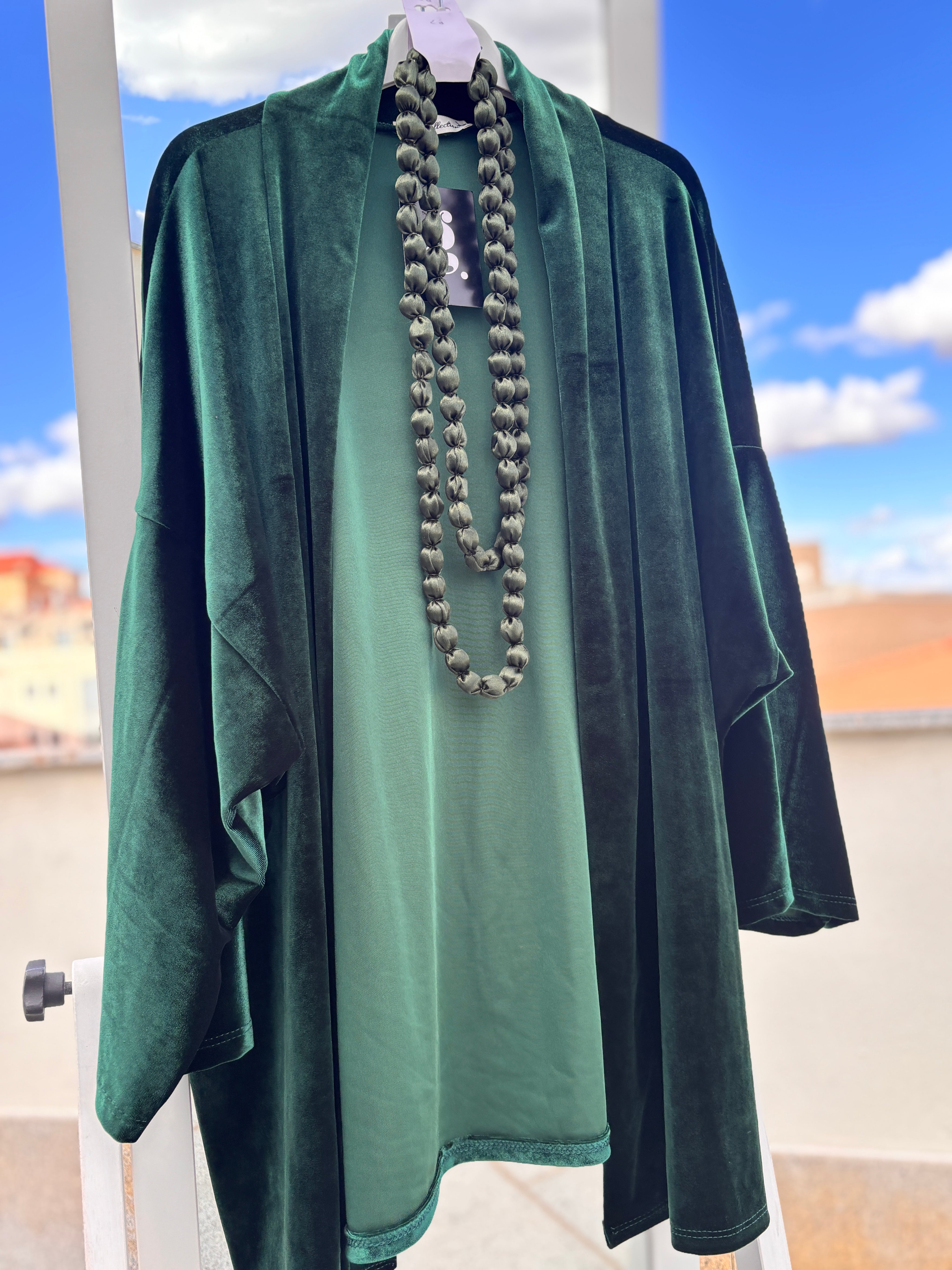 Kimono corto de manga japonesa. Tejido suave terciopelo en vibrante color vese bosque.