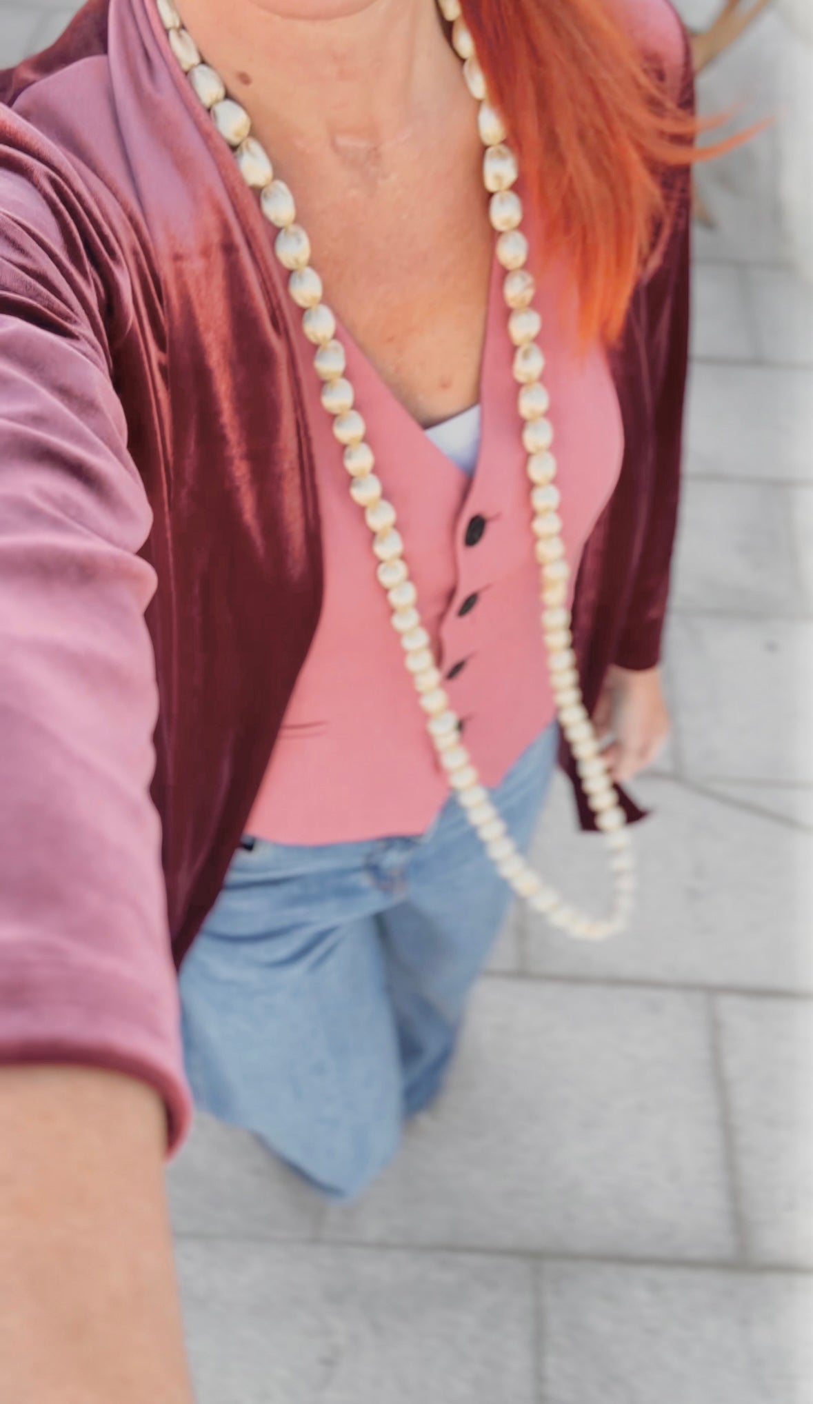 Kaftan recto largo sin cierre y de manga larga. Tejido suave terciopelo en vibrante color caldera.